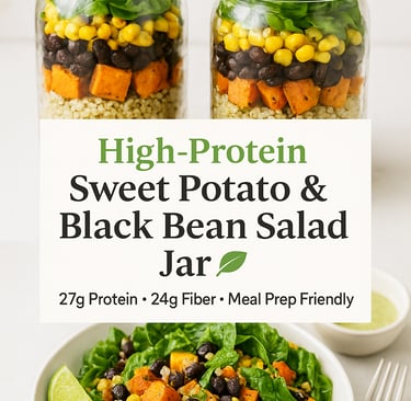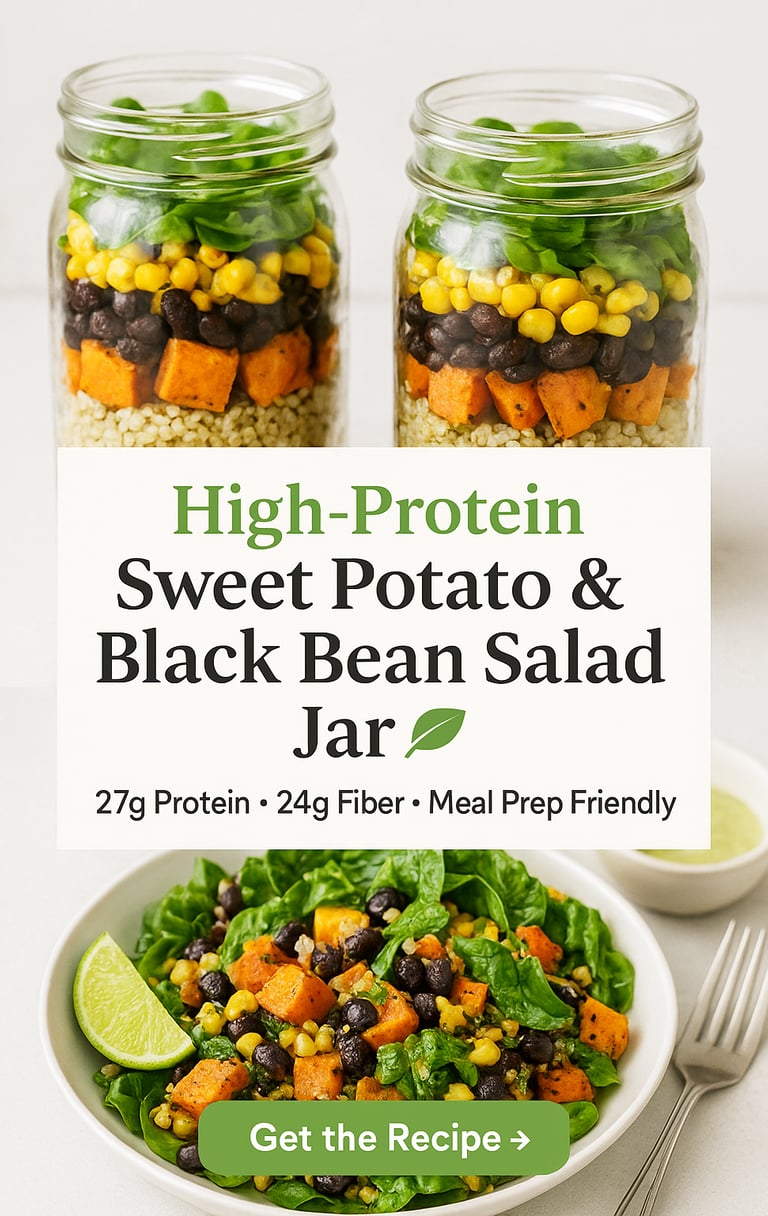 Roasted Sweet Potato & Black Bean Salad Jar: A High-Protein, High-Fiber Lunch Hero.