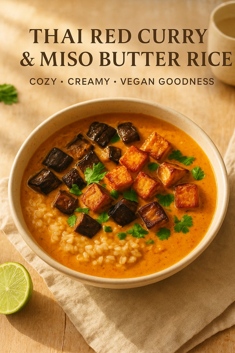 Thai Red Curry Broth Over Miso Butter Rice: A Creamy, Spicy, and Bold Vegan Dinner